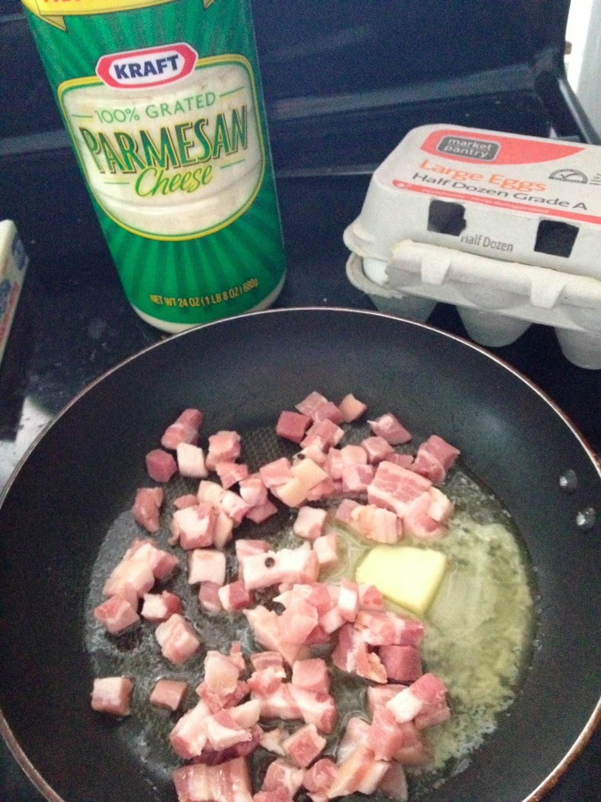 I decided to try and stick to the My Plate as close as possible with equal portions of fruit, veggies, grains, and protein. To make it a regular recipe assignment I chose the Pasta Carbonara adaptation from the Pasta with Pancetta and Pecorino on page 506 of Bittman's book.